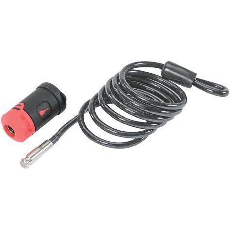 The only Cable Lock that will open with your car key, BOLT Cable Locks feature a solid zinc core, automotive grade cylinder with patented 6 plate-tumbler sidebar to prevent picking and bumping, a stainless steel lock shutter to keep out dirt and moisture, and a rugged Santoprene jacket to protect your gear. BOLT Cables are 6′ long and 1/4″ coated in black vinyl to 5/16″ outside diameter, and coil sprung for compact storage. Made in the USA. Limited lifetime warranty.