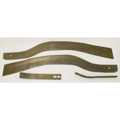 The rear plates are 3-1/2 feet long. They start at the rear body mount outrigger and go up over the rear axle to the rear crossmember. The rear plates also come with two lower plates to reinforce the shackle hanger area of the frame. 4 piece set.