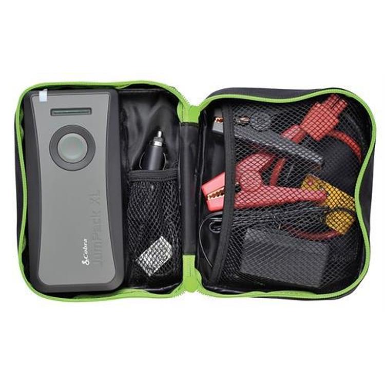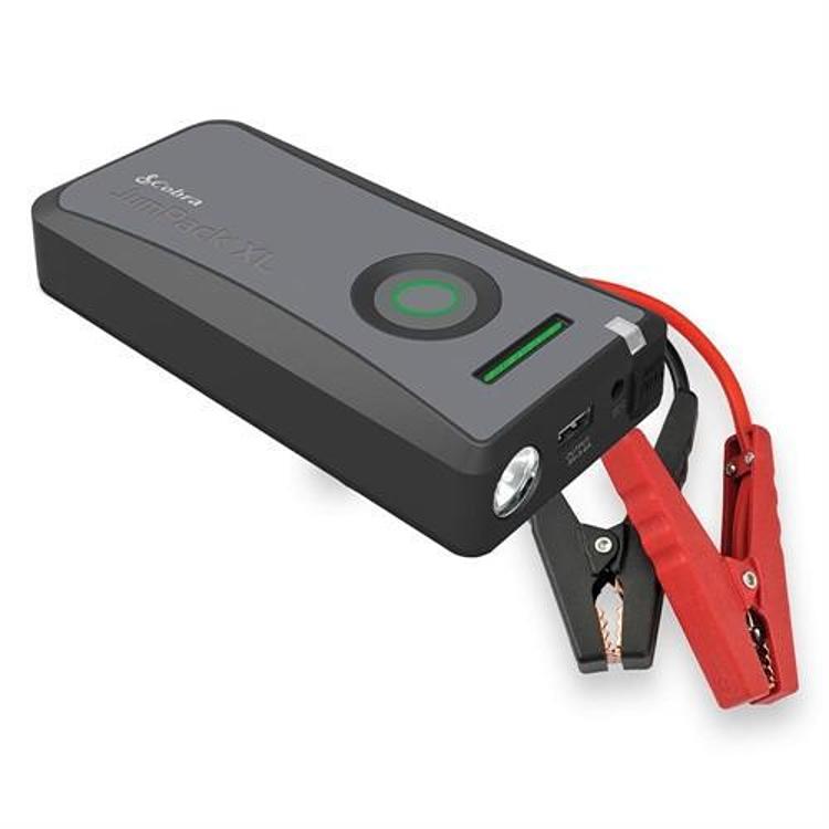 What if you could jump start your car, light-duty truck, cargo van and charge your mobile devices off the same battery pack that easily fits in your backpack or glove compartment? The Cobra JumPackTM XL is all of that and more. With a starting current of 300 and 500 peak Amps. The Cobra JumPack XL has enough power to jump start most gasoline and diesel cars, light-duty trucks and cargo vans multiple times on a single charge. This compact, portable power pack also contains a UL-registered 41.1Wh (11,100mAh) battery with a 3 Amp USB output to rapidly charge any 5 Volt portable devices from smart phones to tablets to digital cameras, and many other devices, making it the ideal emergency battery pack for home, office, vehicle or the outdoors.