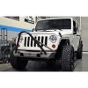 The Brawler Lite front bumper for JK is a grille-width, high clearance bumper designed to combine hard core off-road performance with full features. This bumper is fabricated from 3/16″ plate steel, CNC laser-cut and precision brake-formed into a low profile, high clearance design. The ends of the bumper extend far enough to protect the lower corner of the JK grille, but not far enough to hinder tire clearance or tire access to vertical obstacles. This bumper is fabricated from 3/16″ plate steel, CNC laser-cut and precision brake-formed into a low profile, high clearance design. The ends of the bumper extend far enough to protect the lower corner of the JK grille, but not far enough to hinder tire clearance or tire access to vertical obstacles. The Trail Stinger used on this version of the Brawler Lite is modeled after the famous Trail Stinger originally developed and popularized by Poison Spyder. This time-honored design has proven itself on hundreds of Jeeps over the past decade, providing simple, clean lines along with a measure of forward-flop protection. The Trail Stinger is made of CNC laser-notched, NC-bent 1-3/4″ diameter .120″ wall DOM tubing. The complex laser-cut notch allows the Brawler Bar to be welded to two different planes on the surface of the bumper, providing incredible strength. The Trail Stinger is fortified by a pair of 1-1/4″ diameter .120″ wall DOM tube gussets. Note: Warn PowerPlant winches are not a direct-fit with the DOM Tube gussets (they may be installed with some minor modifications by the installer). Unlike the Poison Spyder BFH series bumpers for JK, the Brawler Lite can be mounted without cutting or altering the Jeep’s frame rails. The faceted design of the Brawler Lite provides the best ground clearance and approach angle possible in a bumper that doesn’t require frame modifications. The factory “Crash Bar” may be left intact or removed for a sleek appearance and high clearance. If keeping the crash bar, we recommend adding the Brawler Lite Skid Plate (sold separately), which conceals the crash bar and protects the electronic sway bar disconnect. Recovery Shackle Tabs are modeled after the high clearance tabs designed for our hard core BFH series bumpers. These tabs are angle to provide maximum approach angle. They are CNC machined from 1″ thick steel billet, specifically designed to accept our heavy duty 3/4″ Recovery Shackles. Selecting this option will get you a pair of these tabs, expertly welded to the Brawler Lite bumper.