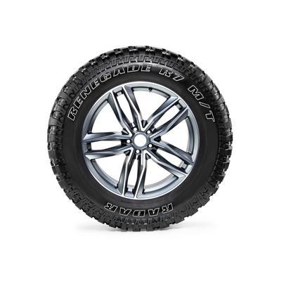 The Renegade R7 is a mud terrain tire that has been designed specifically for extreme off-road applications. This range fits SUVs and light trucks and is suitable for vehicles with lift-kits. It features a reinforced 3 ply casing for high durability and state-of-the-art Stone Ejector Technology which prevents stone retention and subsequent tire damage. An ideal choice for drivers who want no compromise with off-road traction and handling. Features: Aggressive pattern featuring a high void ratio and open shoulder design. Unique state-of-the-art stone ejector technology. Reinforced 3 ply casing construction. Special tread compound and wide footprint. Benefits: Outstanding traction in all conditions. Helps prevent stones from drilling and lodging in the tread. Superior overall resistance to damage. Enhanced tread life and braking on all surfaces.