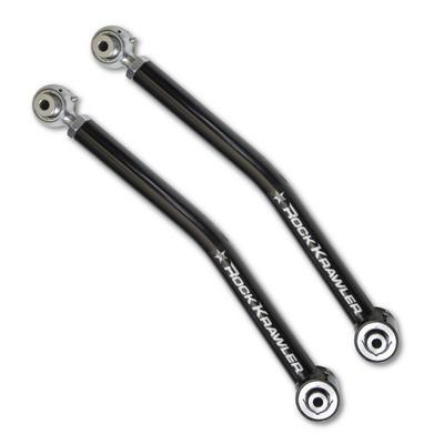 Rock Krawler JL X Factor lower control arms are made from 1.75 inch OD 0.313 inch wall DOM steel and have a durable black powder coat finish. The arms are bent to offer improved ground clearance for increased off-road ability. An adjustable 1.25 inch shank Pro-Krawler Joint at the frame offers a misalignment capability of 60 degrees and is both serviceable and rebuildable. The Pro-Flex joint at the frame side connection uses 70a Durometer Thermoelastomer raceways that offer greater vibration isolation. The Pro-Flex bushing has misalignment capability of 30 degrees. Giving the arm a total misalignment capability of 90 degrees. The Rock Krawler JL Lower Control Arm combines strength, durability and off-road ability making it one of the strongest adjustable arms on the market.