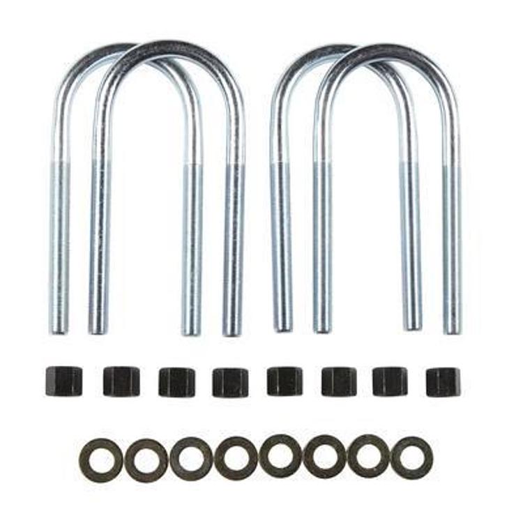 Complete u-bolt kit for YJ Dana 35 rear axle. U-bolts are clear zinc plated and include nuts and washers.
