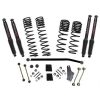 Skyjacker’s new lift systems for the NEW Jeep Wrangler JL & Rubicon feature DUAL RATE-LONG TRAVEL coil springs designed specifically for the JL with Unique Left & Right Coil Spring Rates found in the OEM coils to ensure superb highway ride quality and performance on any terrain – whether on-road or for off-road use. The DUAL RATE-LONG TRAVEL coil springs offer the best of both worlds from the street to the trail! The 1st spring rate offers an exceptional highway ride AND the coils will expand when off-roading during articulation as the suspension droops to keep the tires in contact with the ground much longer than a single rate coil. This results in a smoother ride while maintaining the coil in the upper coil bucket even at full droop. The 2nd rate (lower coils) only engage after compression past the 1st rate. This second rate allows consistent control and stability during body roll and heavy off-road suspension movement. Systems feature extended sway bar end links which allow for full droop & long travel as well as bump stop extensions to make sure the suspension clears the tires at bump. Long travel front and rear shocks are length fitted to offer the maximum extension allowable for full articulation to complete this total package. Choose your preference from either M95 Monotube or Black Max Front and Rear Long Travel shocks for proper suspension and ride control of the new Wrangler JL.