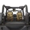 The ultimate storage solution for your off road vehicle! The G.E.A.R. seat cover is a completely new way of looking at storage for your off road needs. Each cover is manufactured from 600 Denier Polyester with a PVC liner and is completely adjustable. The G.E.A.R. comes with seven different pouches that securely fasten using a Molle/Pals Restraint System which will not come loose under the harshest off road conditions. It’s offered in three different colors; Black, Coyote Tan and Olive Drab Green and is completely UV stable. Smittybilt provides the best in G.E.A.R for all of your Off Road Needs. Available in Black (01), Tan (24) and Olive Drab (31). *If you have side airbags in the seat, you must leave the Velcro band loose.