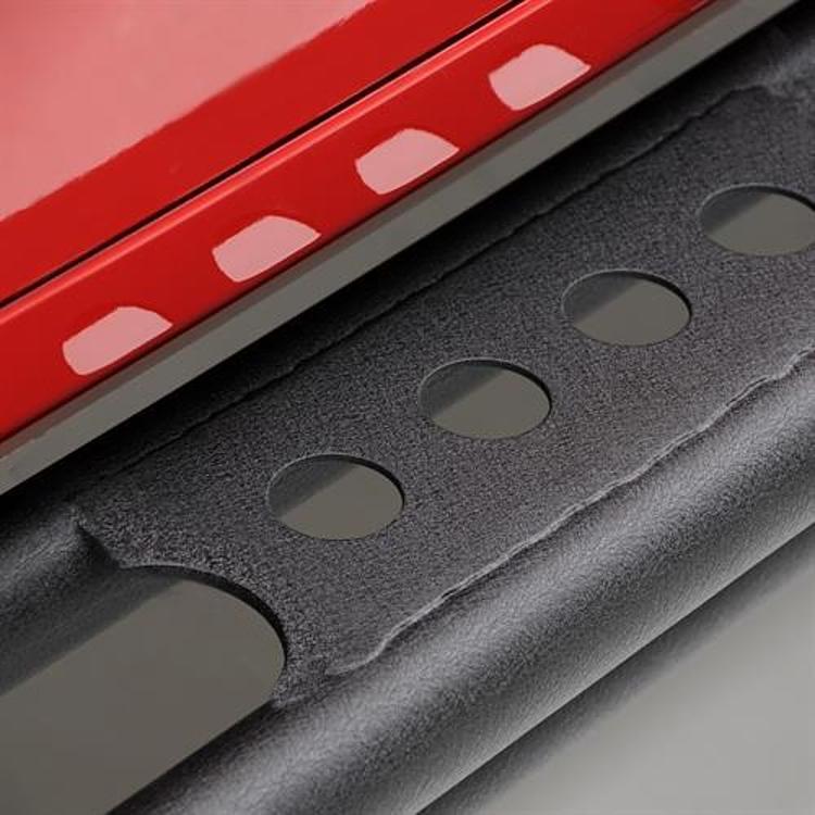 The SRC Side Armor for the JKs utilize a one piece design and is manufactured from 1.75″ .120 wall tubing. Each SRC Side Armor utilizes a dual girder system provides the ultimate protection for the sides and under section of your Wrangler. SRC Side Armor can be utilize as protection as well as a step at the same time. Every SRC Side Armor bolts up to your vehicle without any drilling or modifications, giving you the ultimate protection from wheel to wheel. All SRC Side Armors come finished in our signature series Matte Black Textured Powder Coat.