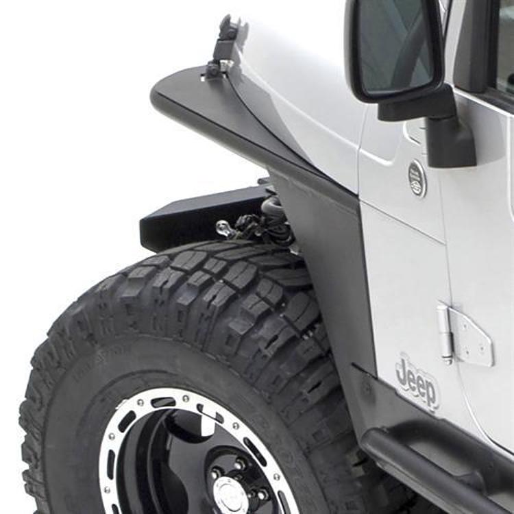 Tubular Design to provide strength and durability. Available with a 3 flare incorporated into the fender. Modifications to the front OE fender is required, finished in a black powder coat. Relocates factory latch to provide a finished look. Comes with stainless steel hardware.